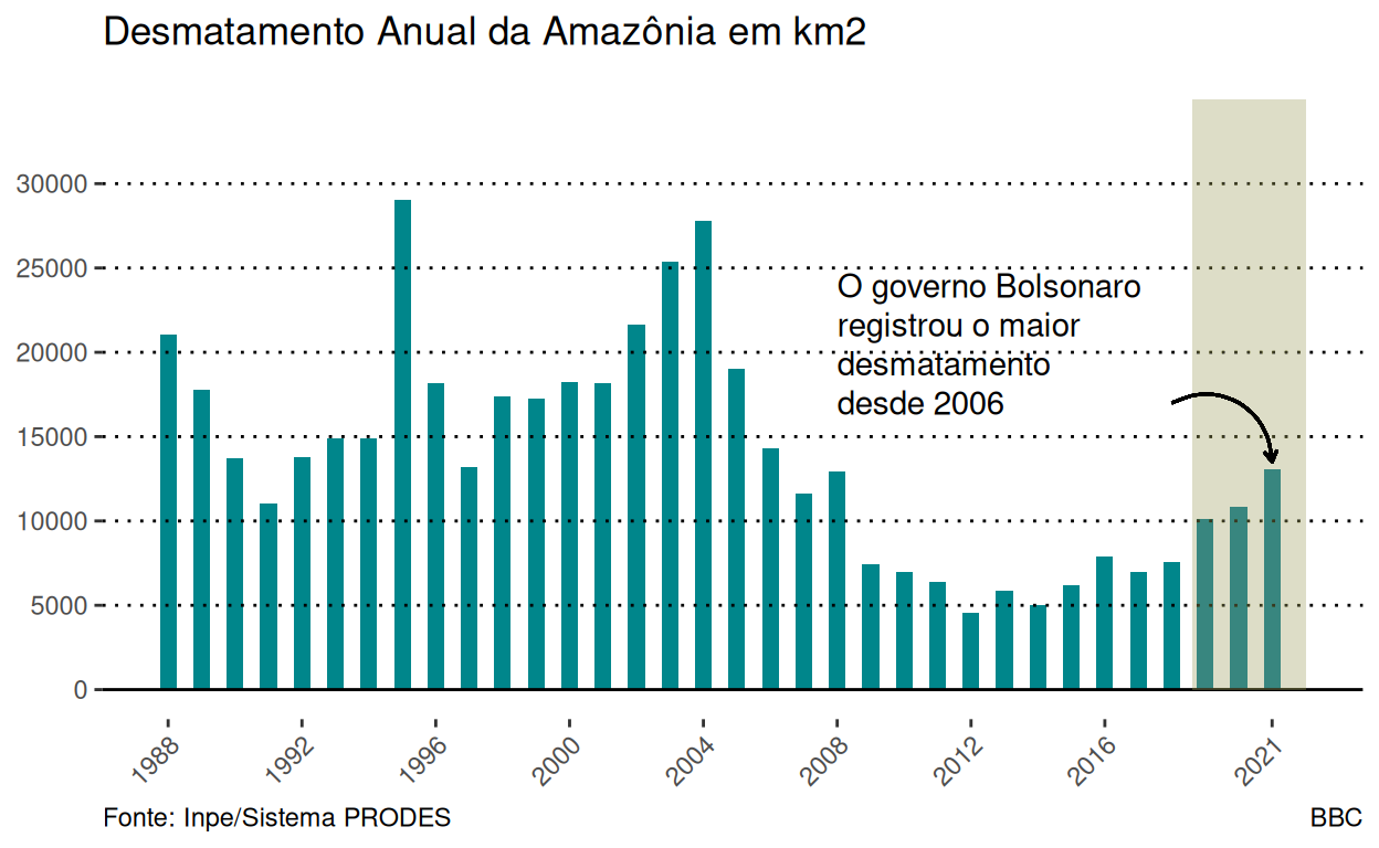 Evolution of Amazon Deforestation (1988 - 2021) with Basis on Inpe - Sistema PRODES Data.