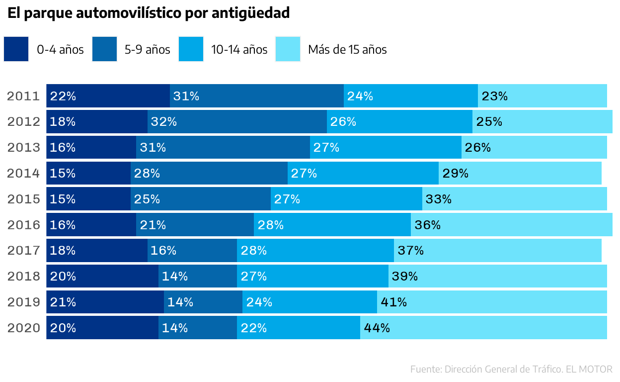 Car accident rate is directly related to the antigüity of the vehicle. The graph represents car fleet and its age along 10 years. I will replicate it as closely as possible, as weel as providing a visualization alternative.