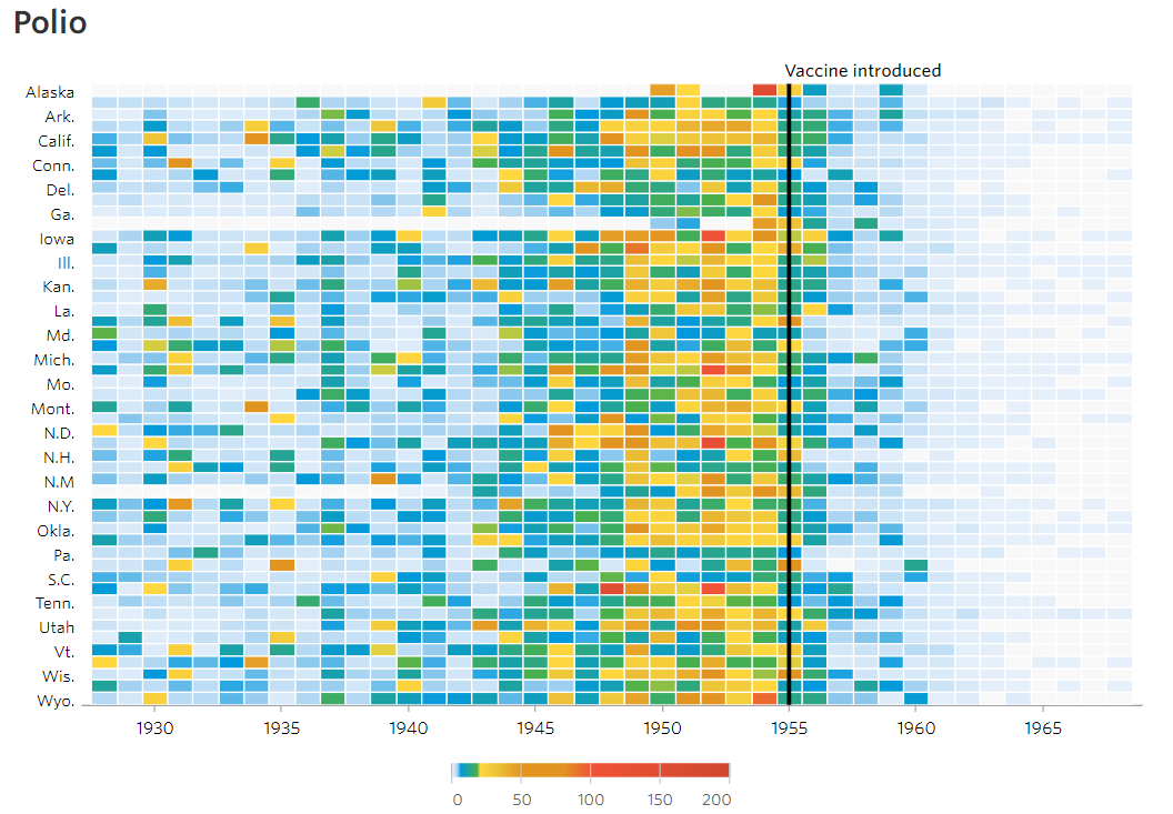 This project has two purposes: to reproduce the plot published in 2015 in the Wall Street Journal article 'Battling Infectious Diseases in the 20th Century: The Impact of Vaccines', and to propose an improved visualization.