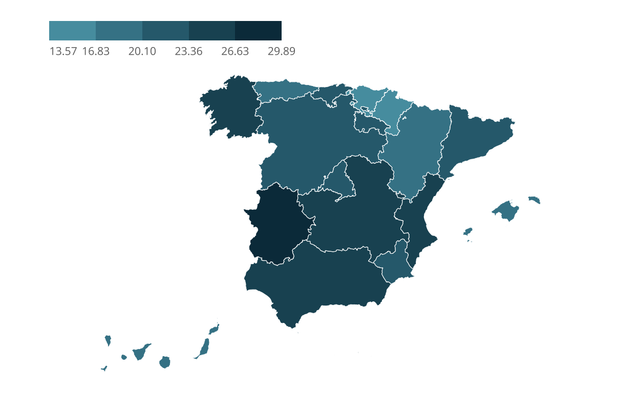 Exploring the nuances of maternal healthcare in Spain through an augmented map, showcasing original cesarean section rates alongside additional insights such as total births per autonomous community and cesarean rates adjusted for the average maternal age.