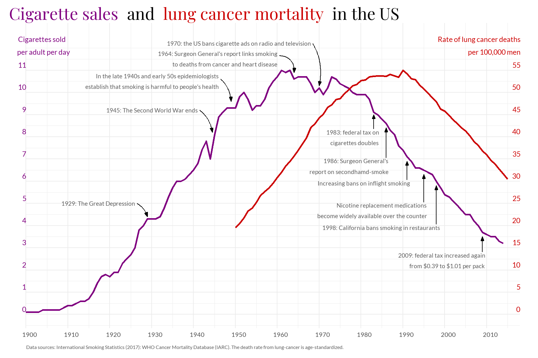 Every year, around 8 million people die prematurely as a result of smoking. In this case, examining the relationship across the cigarettes sales in men in the United States.