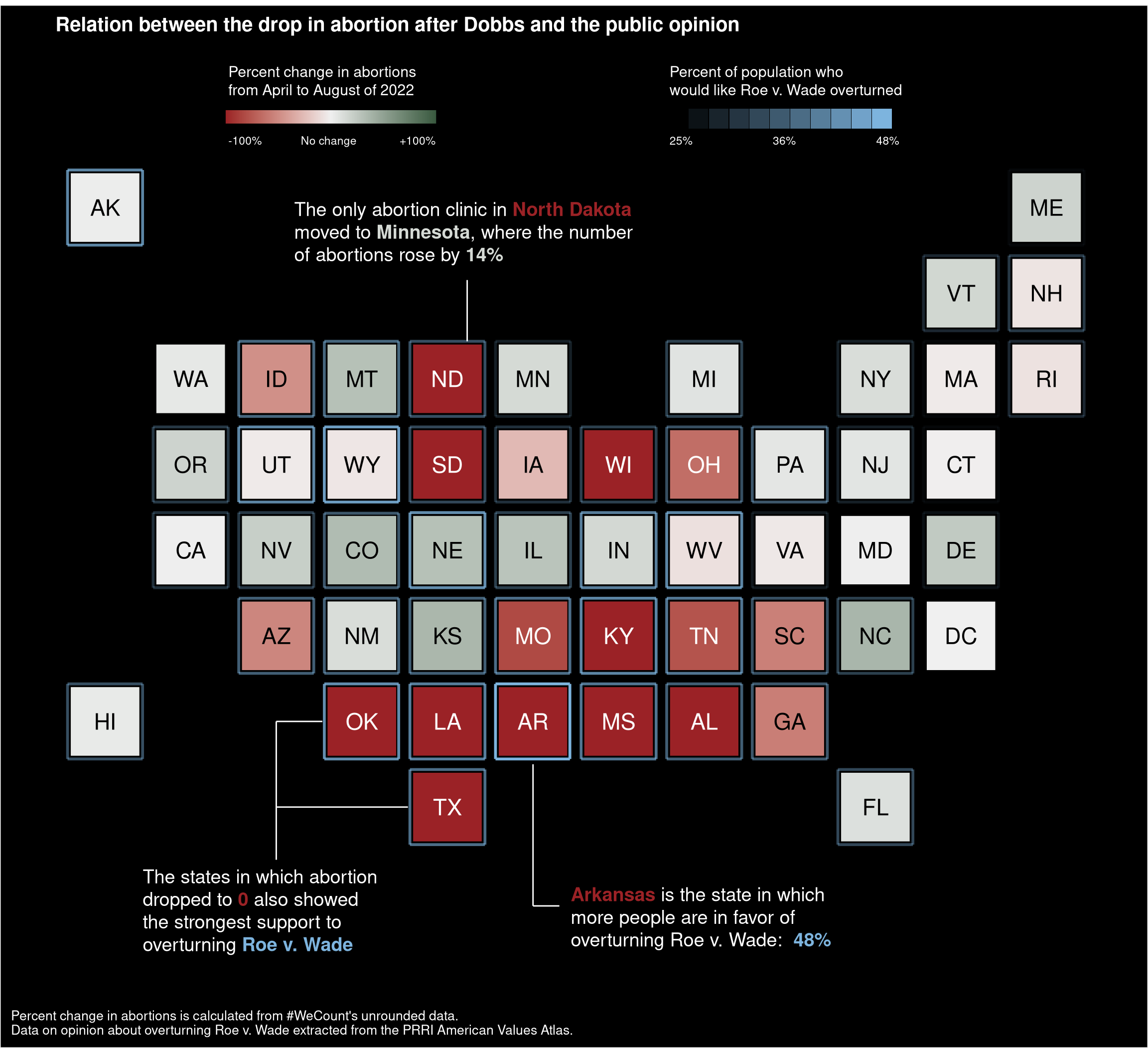 Visualization of the change in abortion data after the Dobbs decision, which gave power of legislation over abortion to the different states of the U.S.