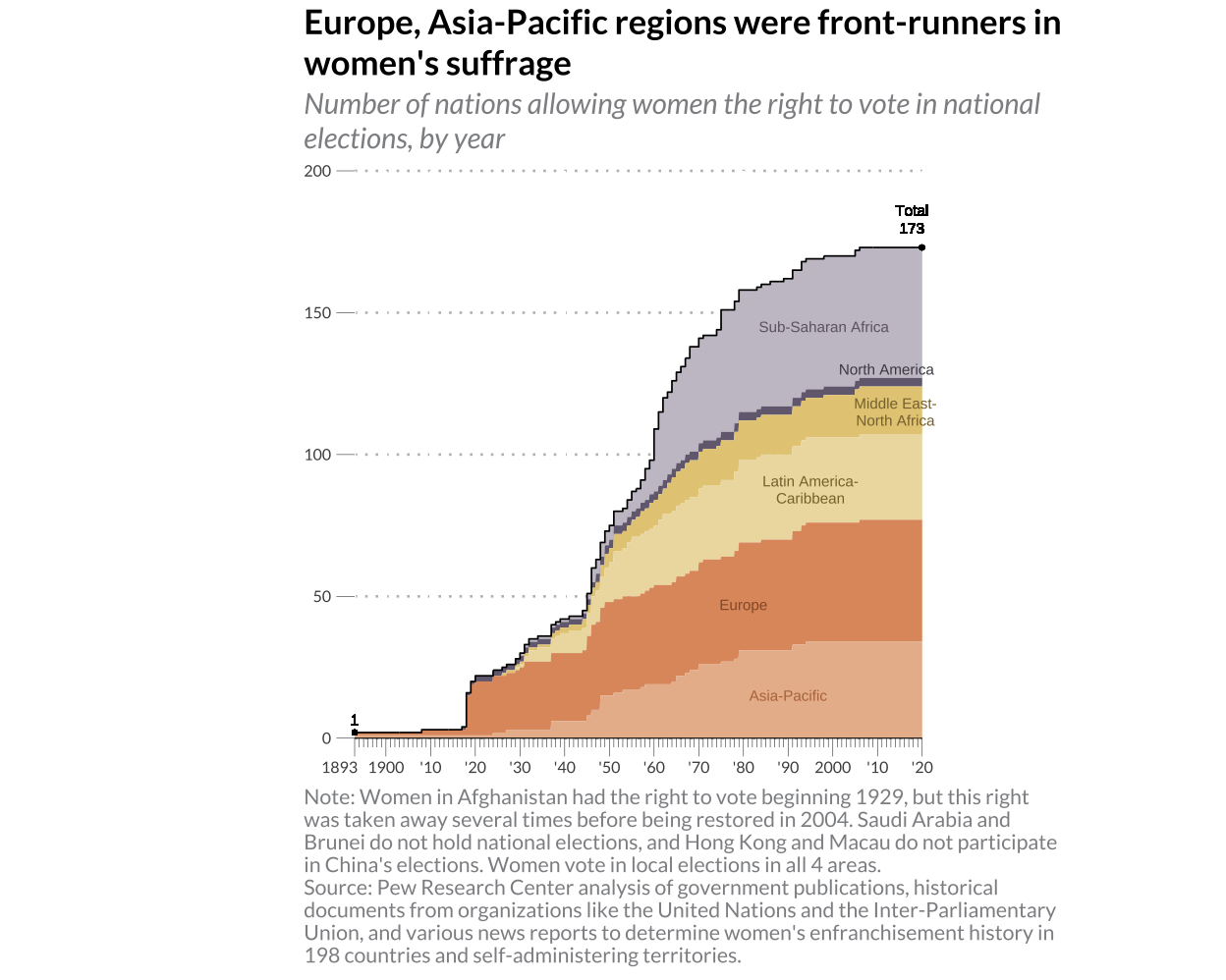 The recreation of a graph illustrating the development of the women's suffrage movement throughout the years.This graph is replicated and then improved by adding data describing the development of women's political participation.