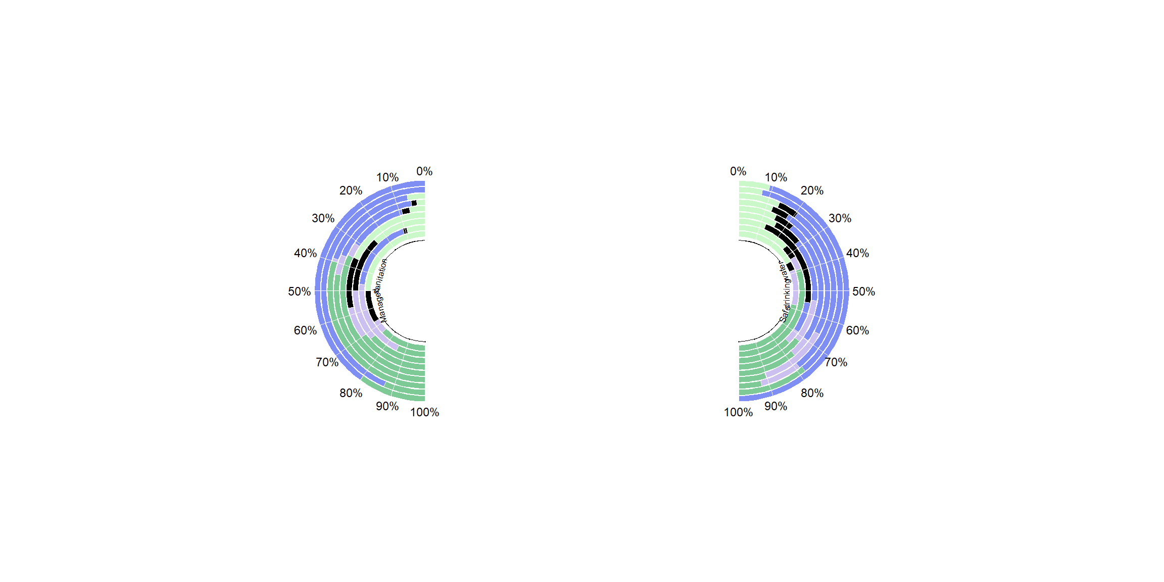 Graph on the use of water and water sanitisation tools among the various regions of the world.
