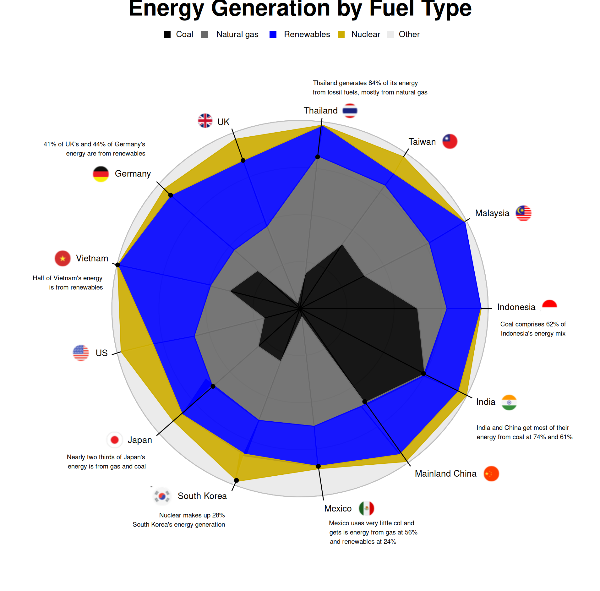 A comprehensive visualization of power plants in France.