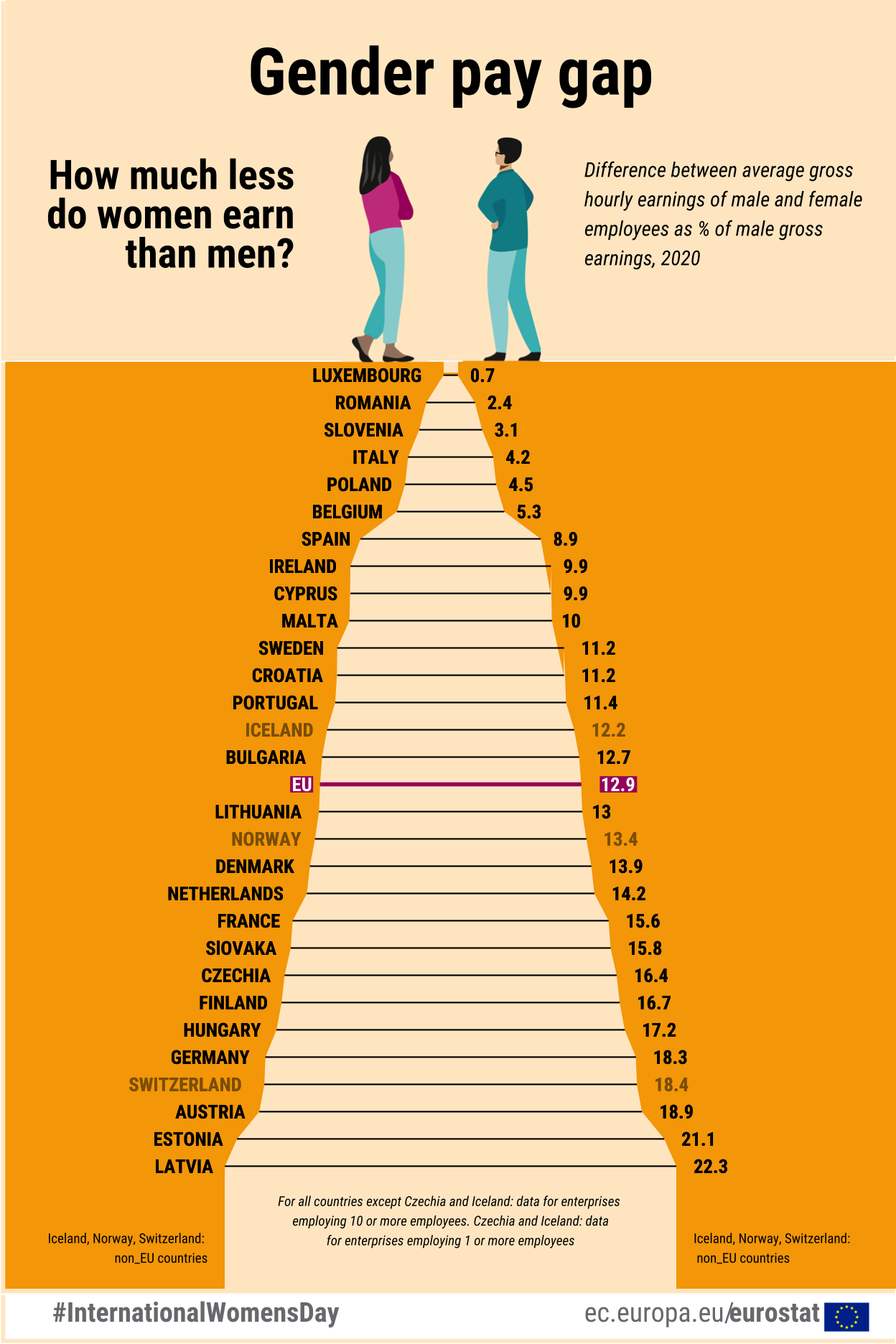 Using Eurstat data to reproduce the Gender Pay Gap graph of 2020.