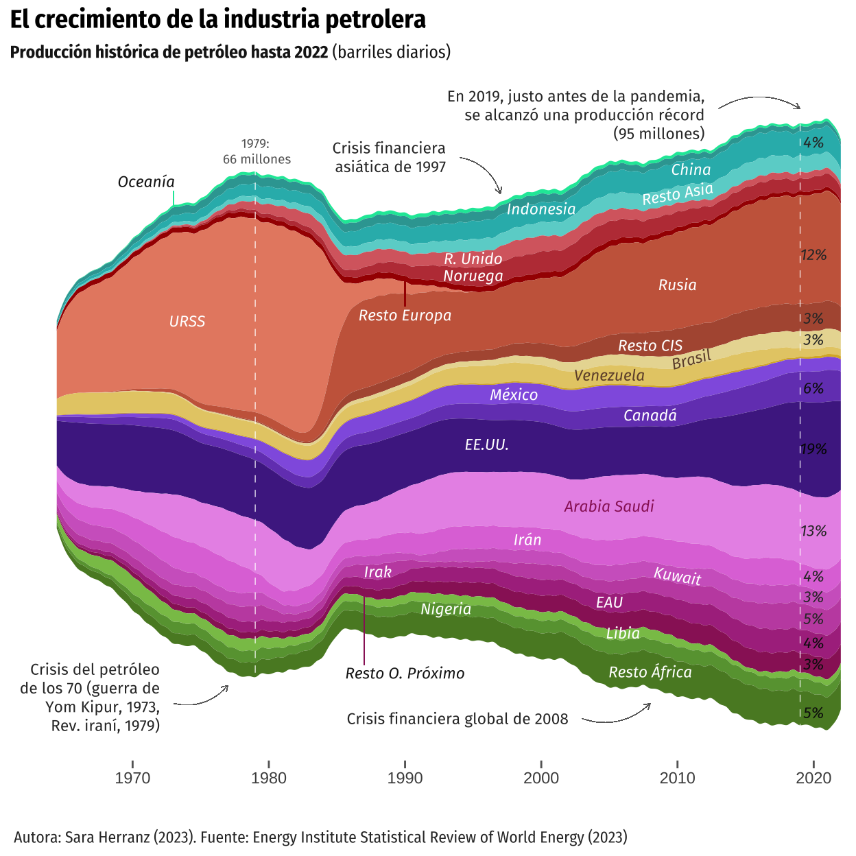 Replication of a graph from El Orden Mundial which aims to represent the evolution of oil production since 1910.