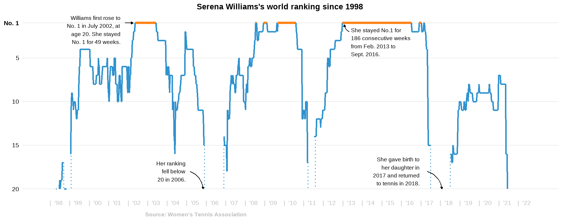 It shows the ranking of the famous tennis player.