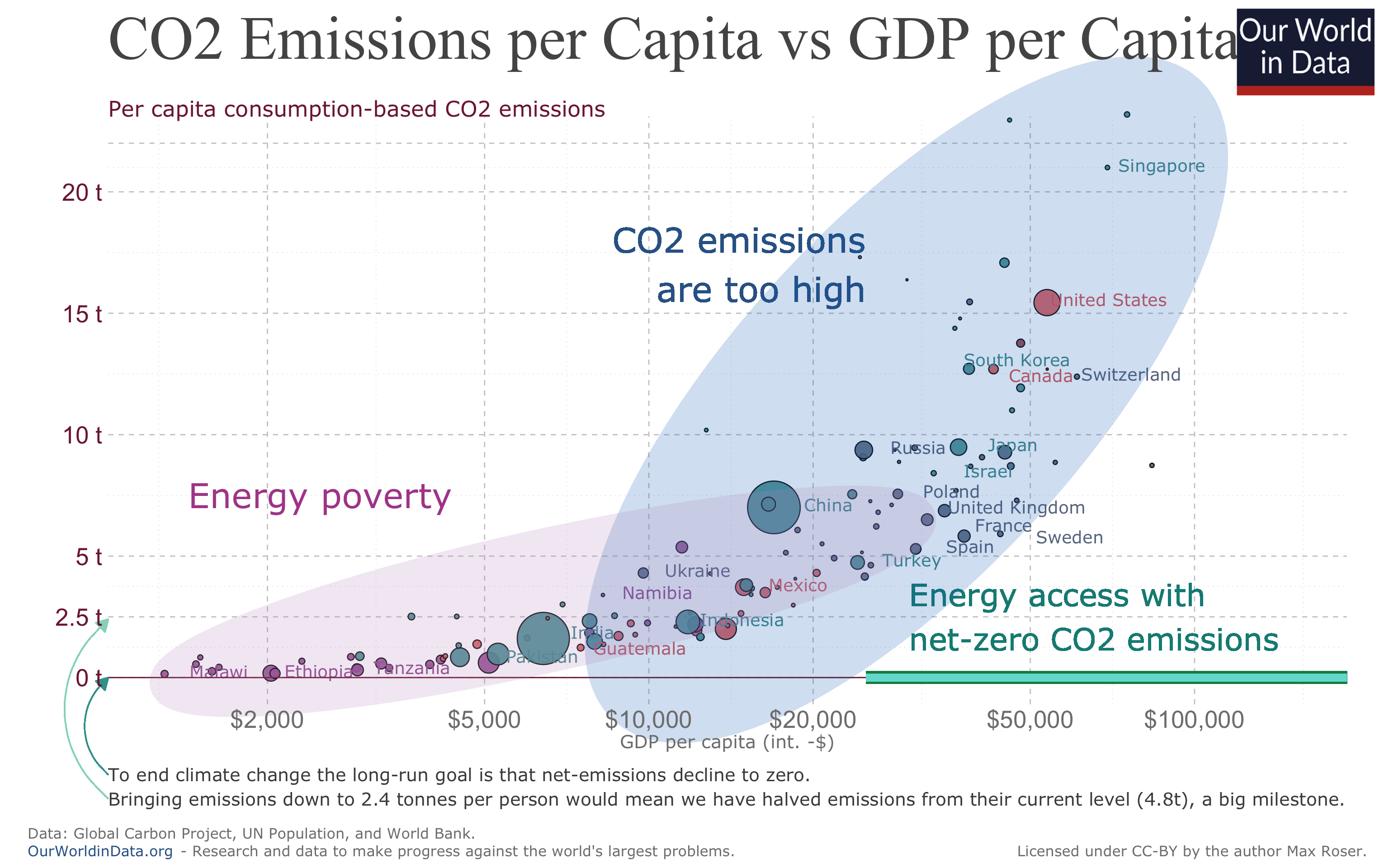 This work explores the relationship between CO2 consumption per capita and GDP per capita worldwide, through a series of visualizations created using mainly the ggplot2 package in R. Starting with an original graph from Our World In Data, we replicate and enhance it. These improvements range from adjustments to labels and colors to the addition of reference lines to highlight trends and patterns. Throughout the process, key improvements are made to increase clarity, visual accessibility, and inclusivity, ensuring the graphics are easily interpretable by a diverse audience, including those with visual impairments. Lastly various types of plots such as other scatter plots, box plots, bar plots, and area plots are made with the same data base.