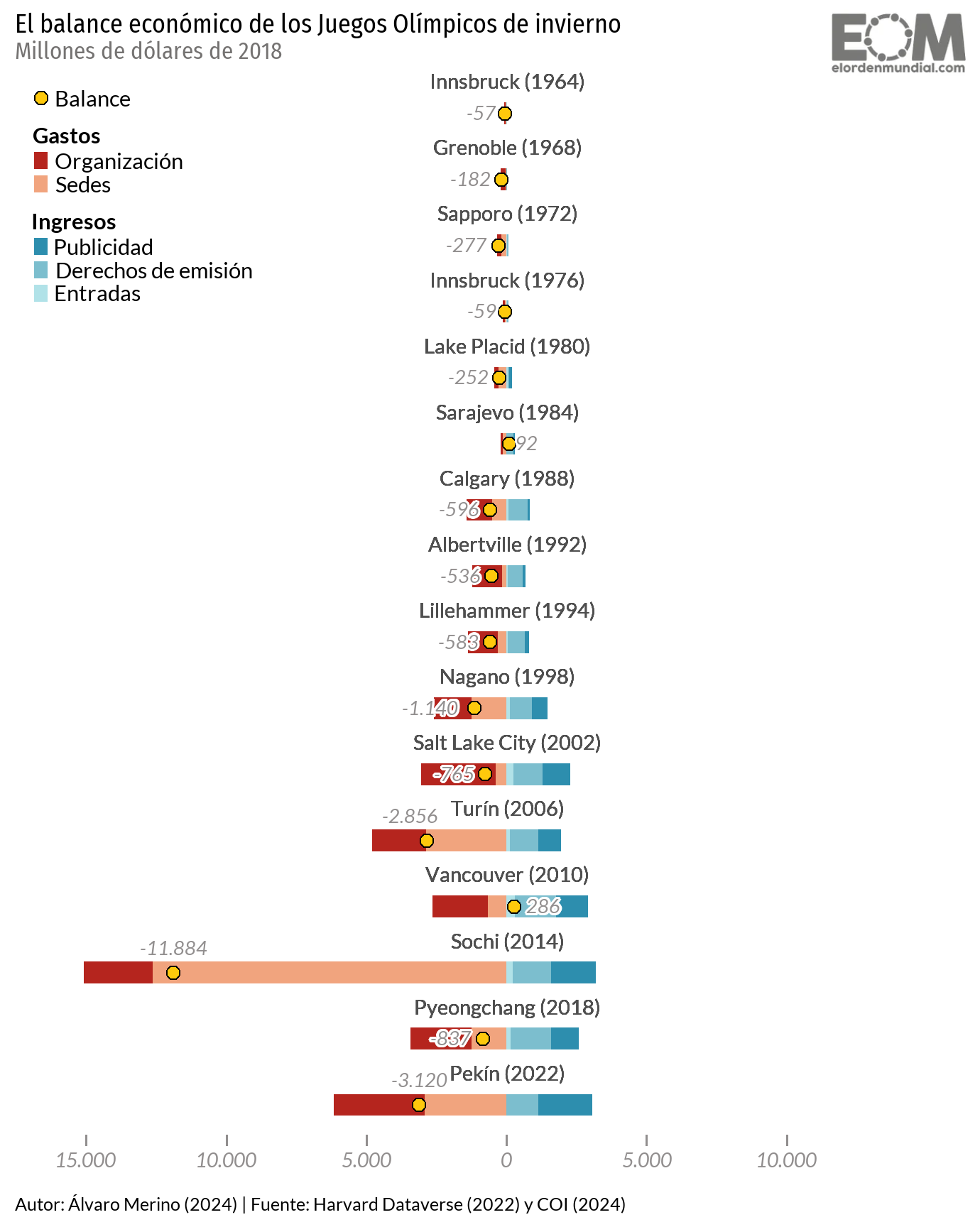This project aims at the reproduction of a graph displaying the costs and revenues of each summer and winter Olympic Games from 1964 to 2022.