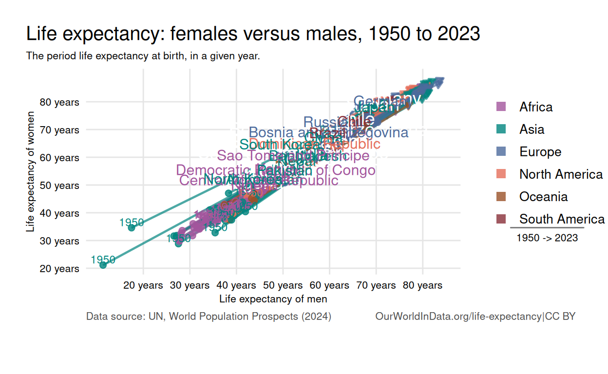 The aim of this project is to reproduce, layer by layer, a chart on Life Expectancy evolution from Our World in Data.