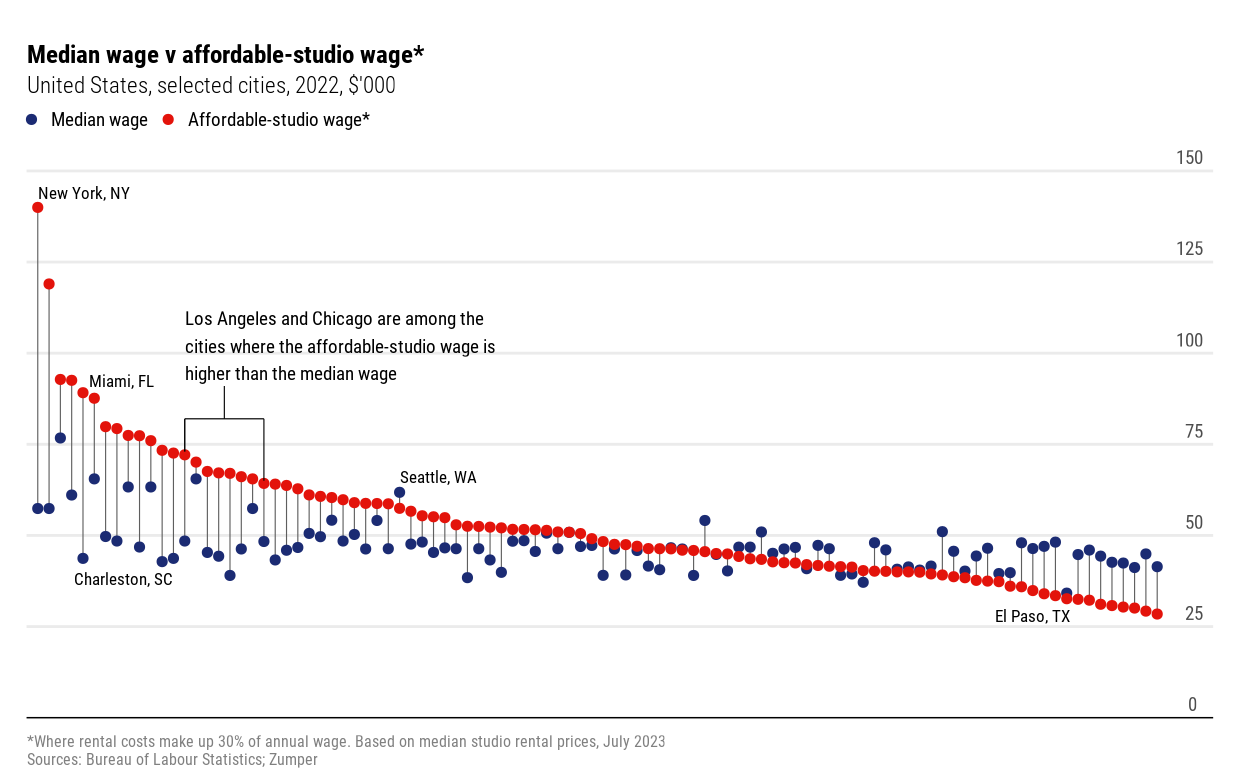 Rising rents and stagnant wages make even modest apartments unaffordable in many U.S. cities