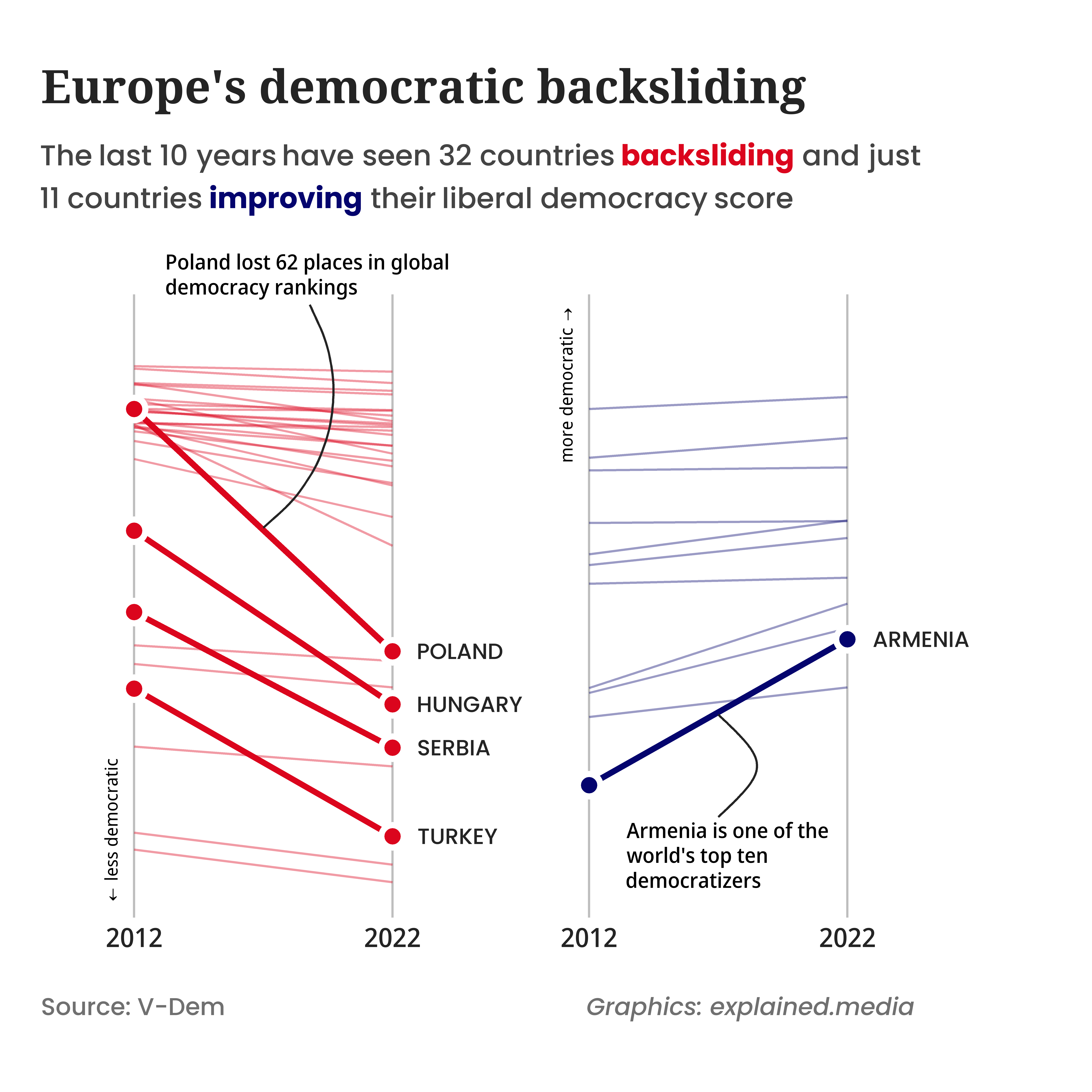 A visual representation of the weakening of European democracies in recent years
